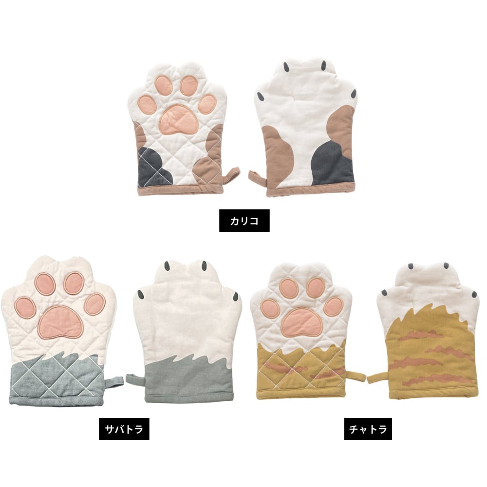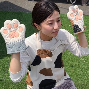 かわいいハチワレ猫の手型ミトンが登場しました。肉球デザインがとってもキュート。猫の手も借りたいお料理時間が楽しくなるグッズです。親指と人差し指の間に仕切りがあります。フックにかけられるひも付き。猫好きさん、お料理好きさんへのプレゼントにもオススメです。