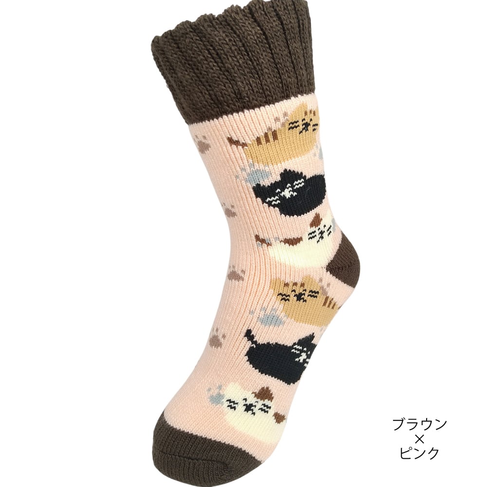 猫靴下(ふわもこクルーソックス超厚手裏起毛センター猫)
