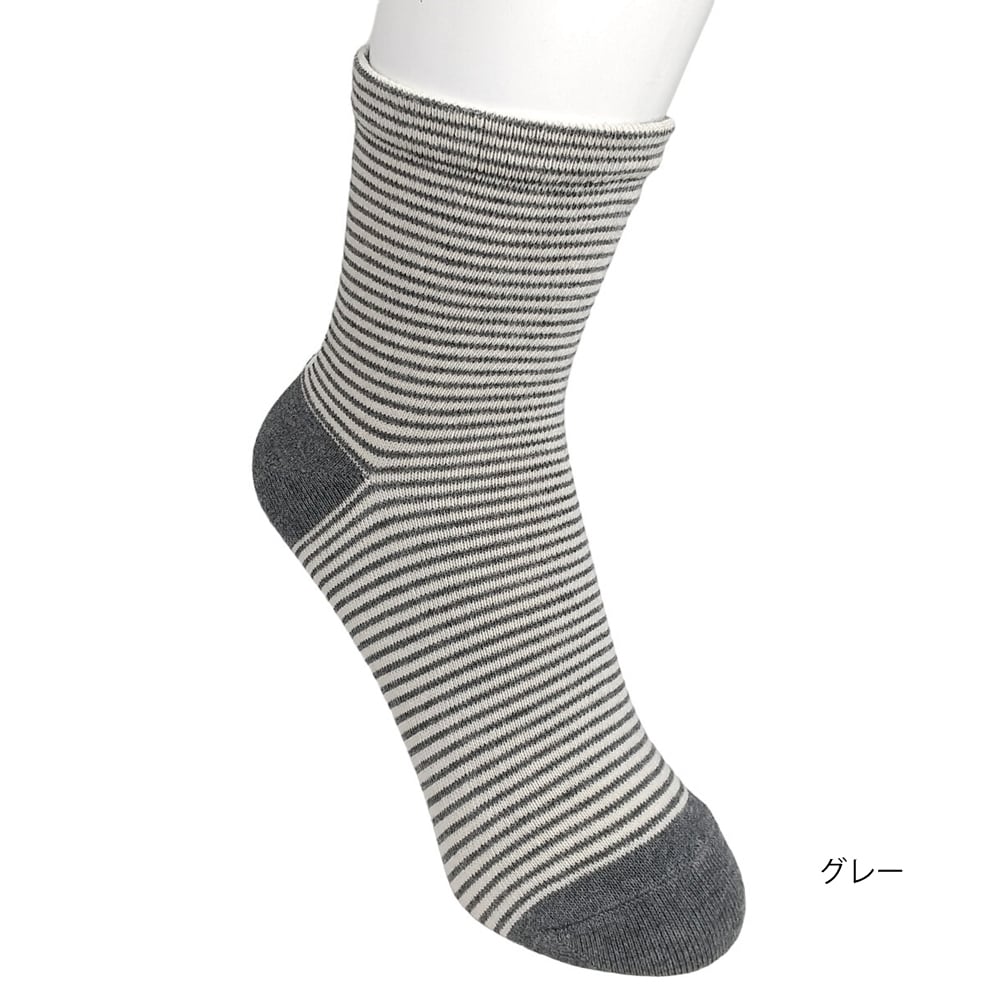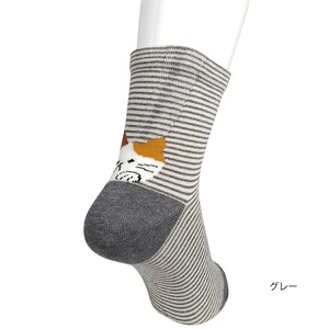 猫靴下(ゴム無し綿混クルーソックスかかと猫ピンボーダー)