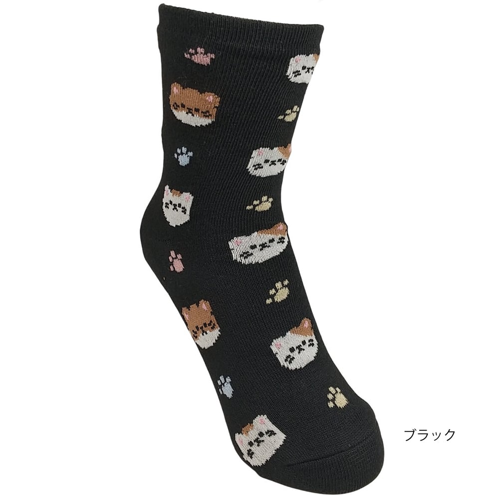 猫ちゃんのお顔と足跡のデザインがかわいい、内側シルク混の靴下です。2重編みで保温性が高い仕上がりになっています。ブラック、ネイビー、グレー、ピンク、の4種類があります。