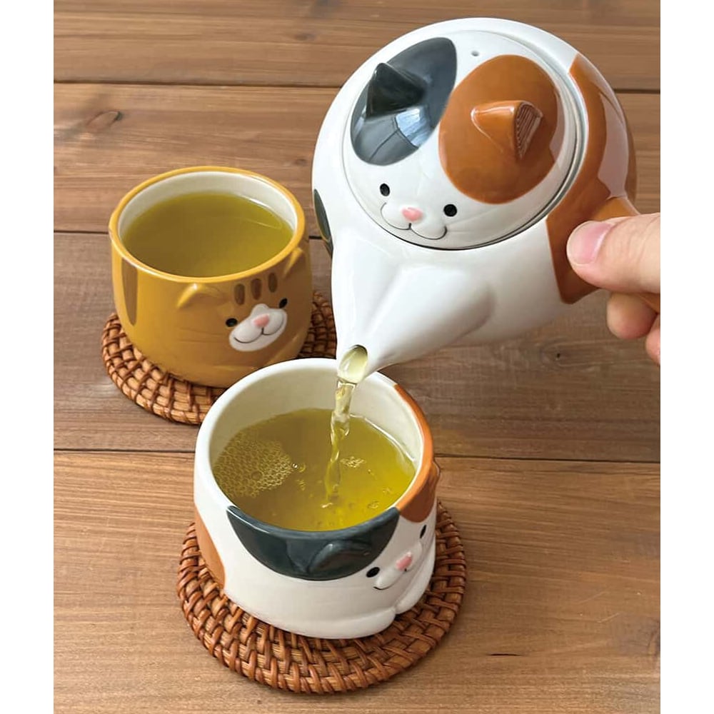 ころんとカワイイみけ猫型の急須で、ゆったりお茶を楽しみましょう。内容量は約260ml。電子レンジ対応(茶こし不可)。猫好きさんへのギフトにもオススメです。陶製品の性質上、色やサイズに多少の違いが出たり、表面などに焼き色、擦れや凹凸が入る場合があります。あらかじめご了承ください。