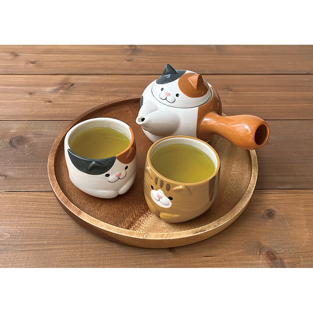 ころんとカワイイ、みけ猫型の湯呑みで、ゆったりお茶を楽しみましょう。内容量は約130ml。電子レンジ対応。猫好きさんへのギフトにもオススメです。陶製品の性質上、色やサイズに多少の違いが出たり、表面などに焼き色、擦れや凹凸が入る場合があります。あらかじめご了承ください。