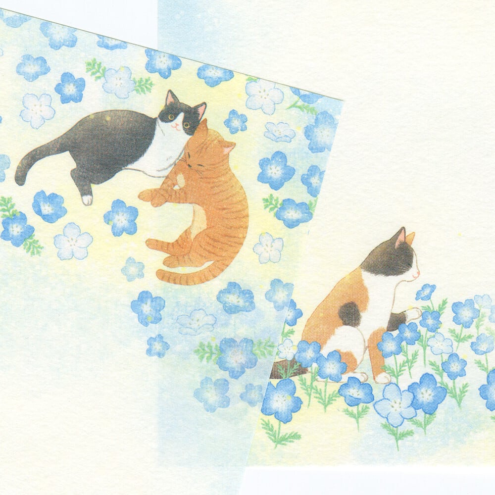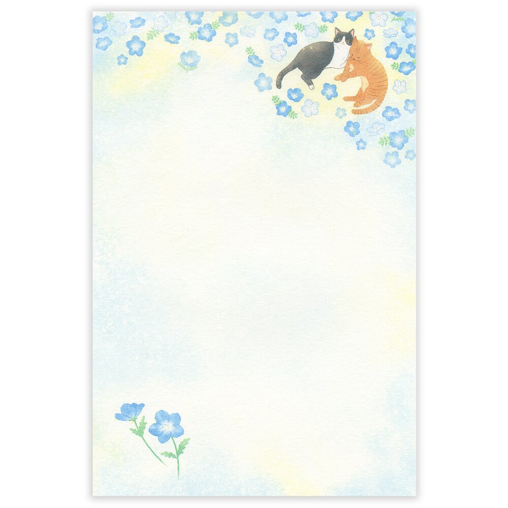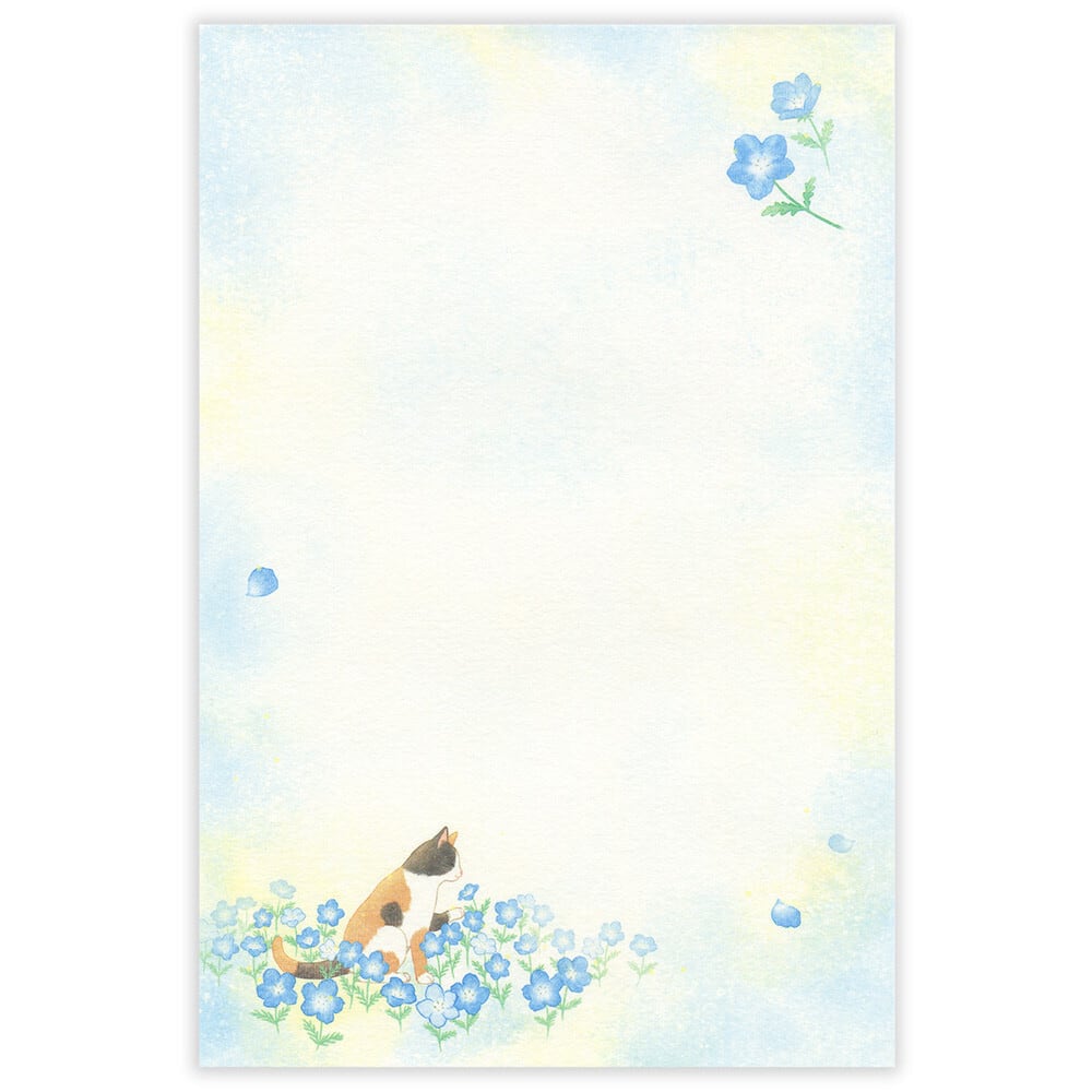 猫便箋(初夏の風景)ネモフィラと猫