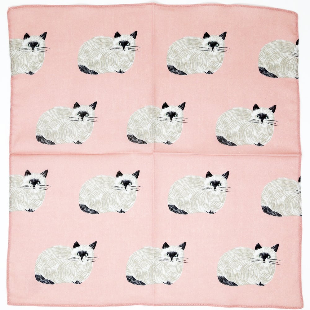 人気のイラストレーター松尾ミユキさんがデザインした猫ハンカチです。やさしいタッチとカラーで可愛らしい仕上がりになっています。