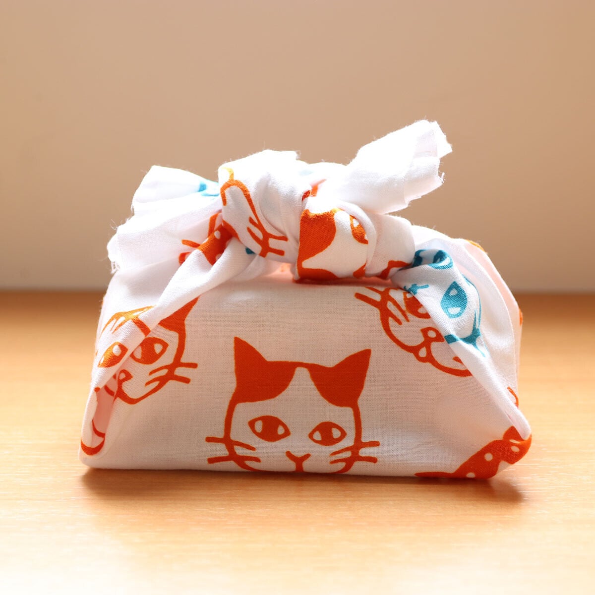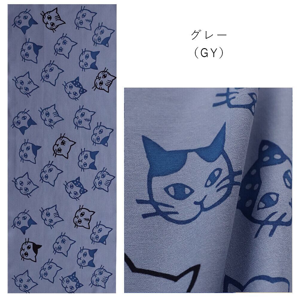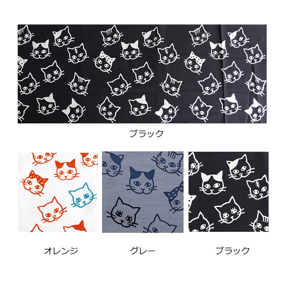 猫の顔がいっぱいの手ぬぐい(手拭い)は、職人による手染めの一品です。日本独特の「注染(ちゅうせん)」という染色技法で作られています。手ぬぐい洗顔にもオススメ。注染染めの3大産地でもある浜松市産で、地元染め工場で丁寧に染めた伝統にとらわれないモダンな図案とカラーが特徴です。生地はガーゼのような風合いで高い速乾性のある知多木綿を使用。総理と呼ばれる太目の糸で目の粗い生地の為、少し硬めでしっかりした生地感をお楽しみいただけます。90cmの型で染め上げていますが、季節や湿度などの天候により87cm〜90cmの誤差が生じます。あらかじめご了承ください。ブラック、白、グレー、オレンジ、の4種類があります。